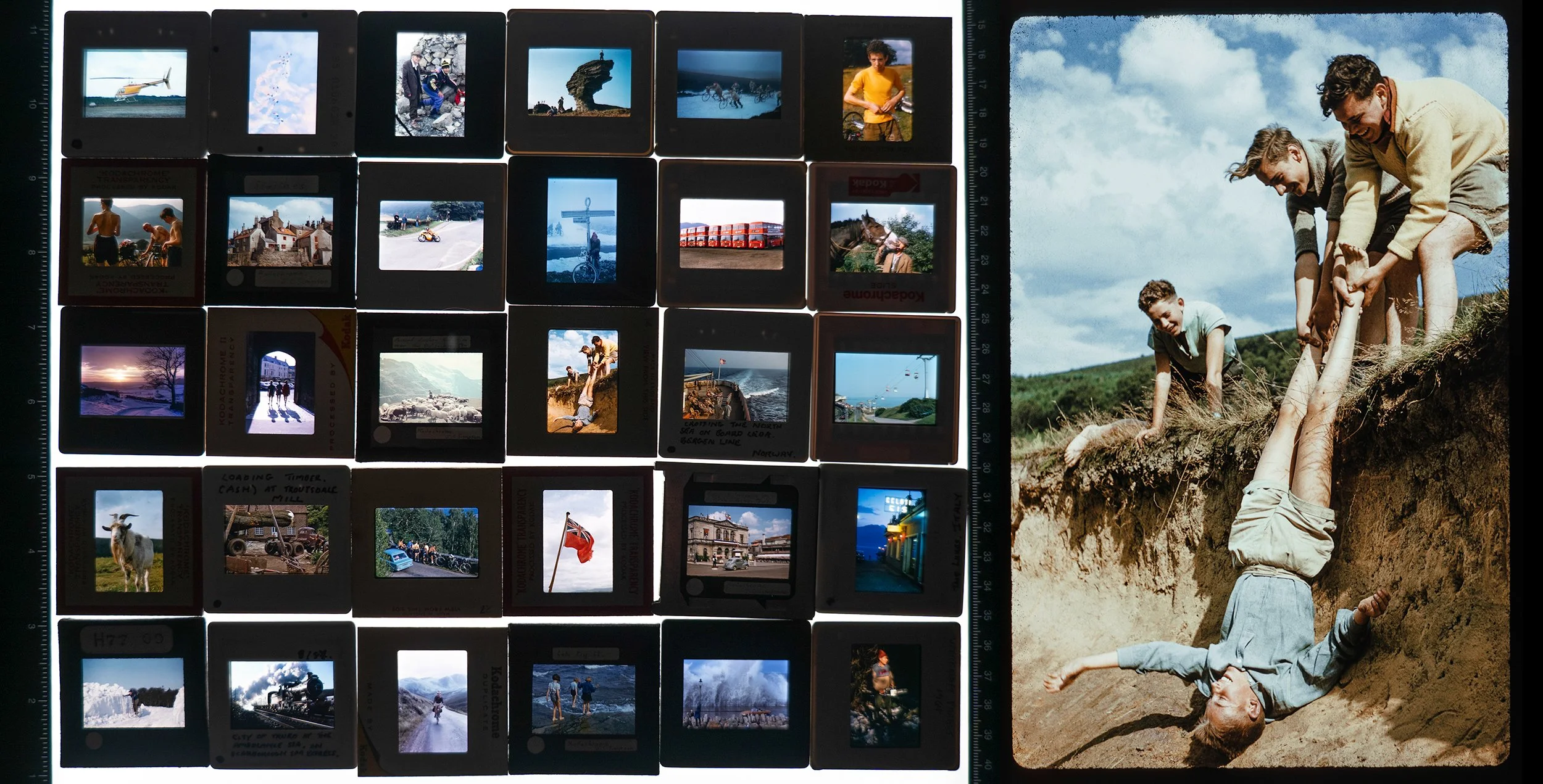 Reversal film, often referred to as ‘slide’ or ‘transparency’ film produces a positive image on an opaque base. This is the most obvious difference when physically comparing to print film. Back in the day, reversal film would be cut into individual frames and housed in glass, metal, plastic, or cardboard framed slides ready to be loaded into a carousel projector for viewing!